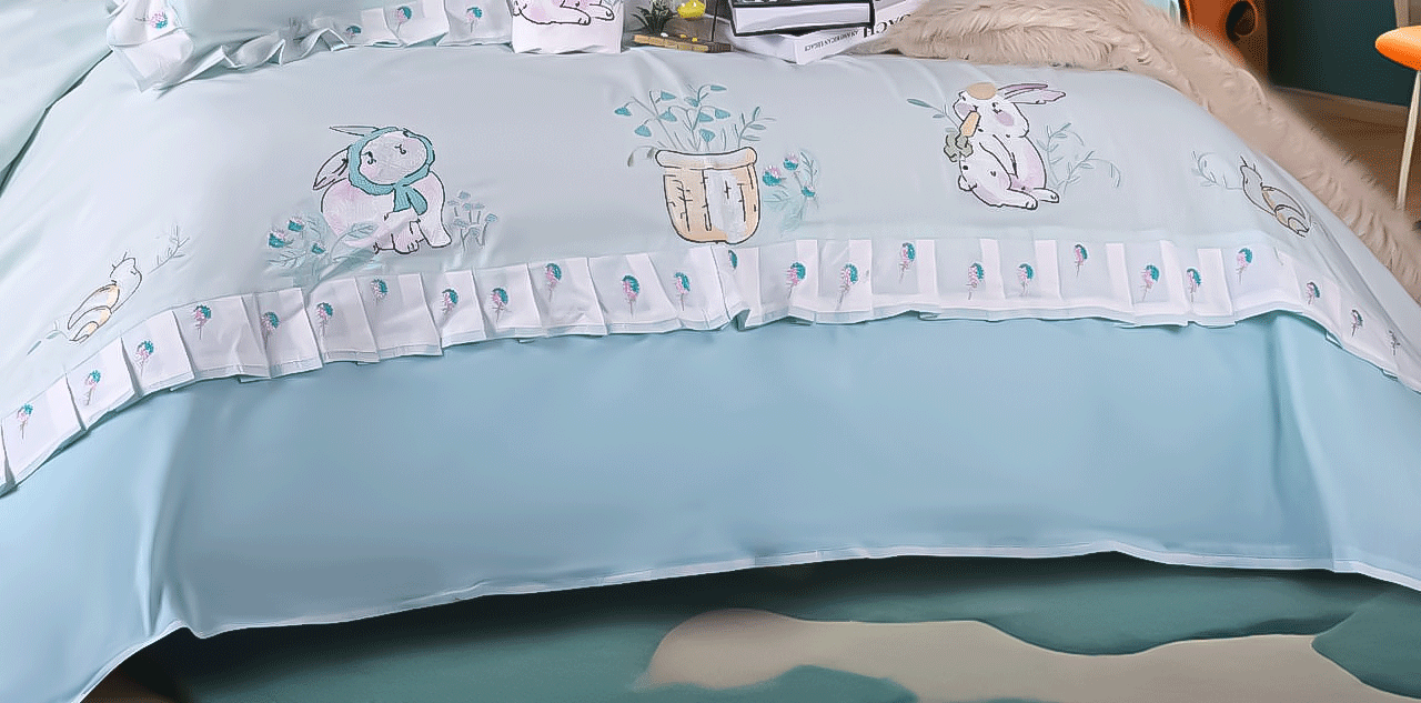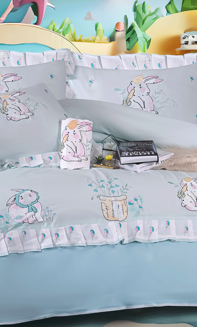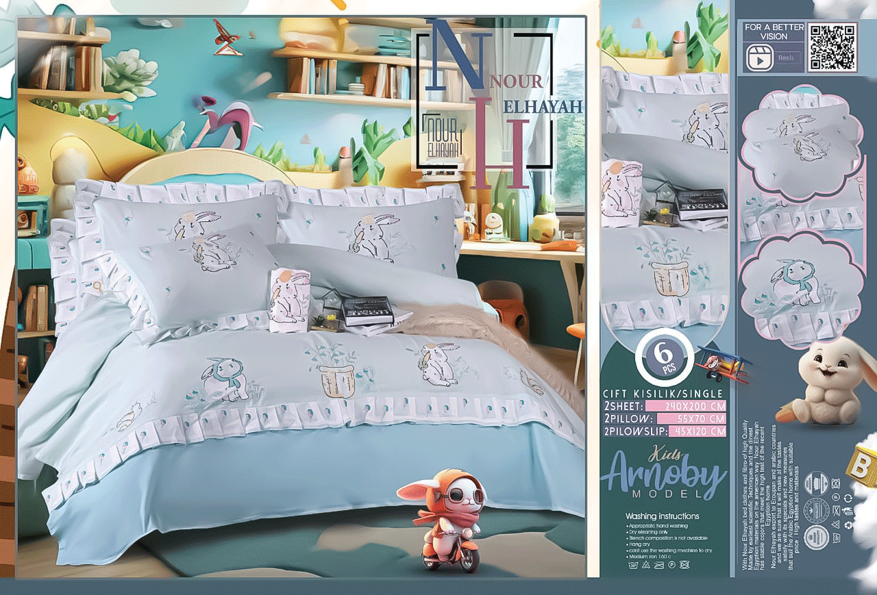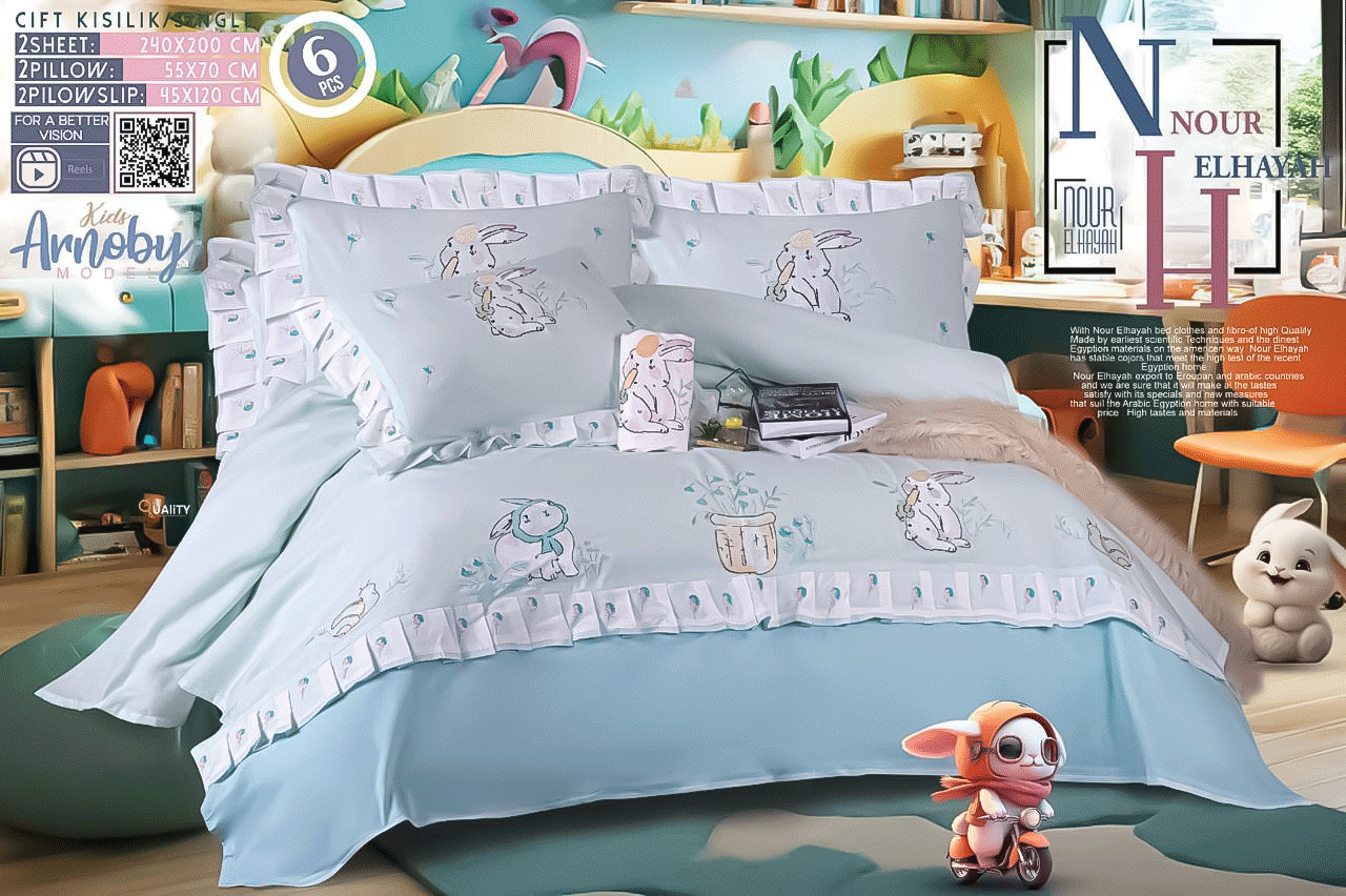 طقم سرير اطفال مطرز بشكل ارنوب كيوت بخامات ناعمة على بشرة طفلك