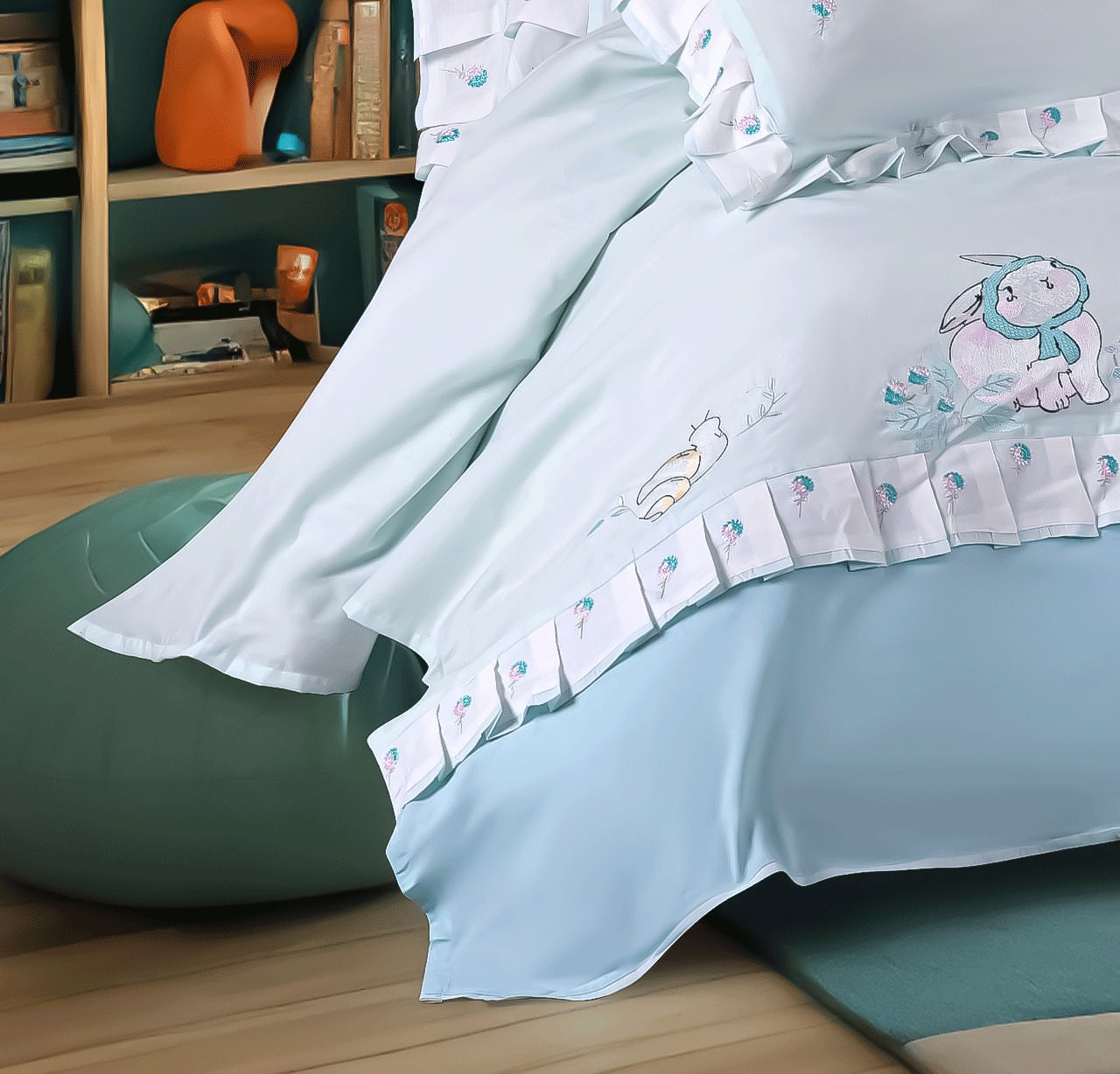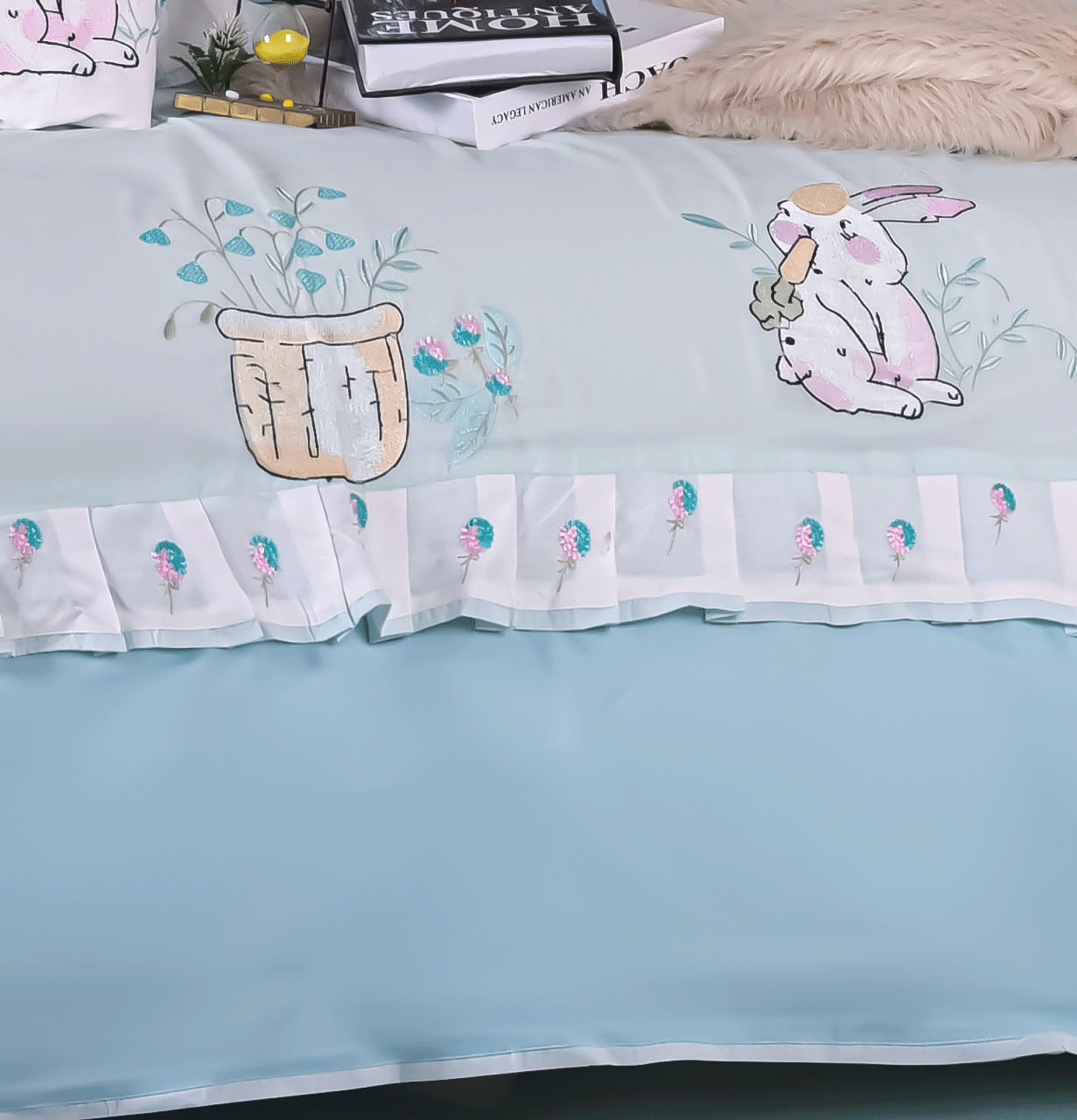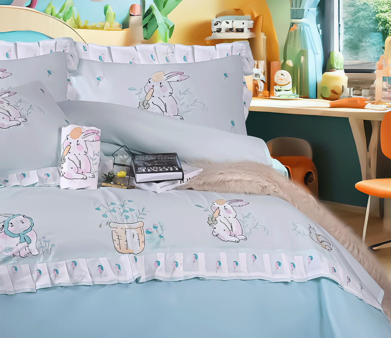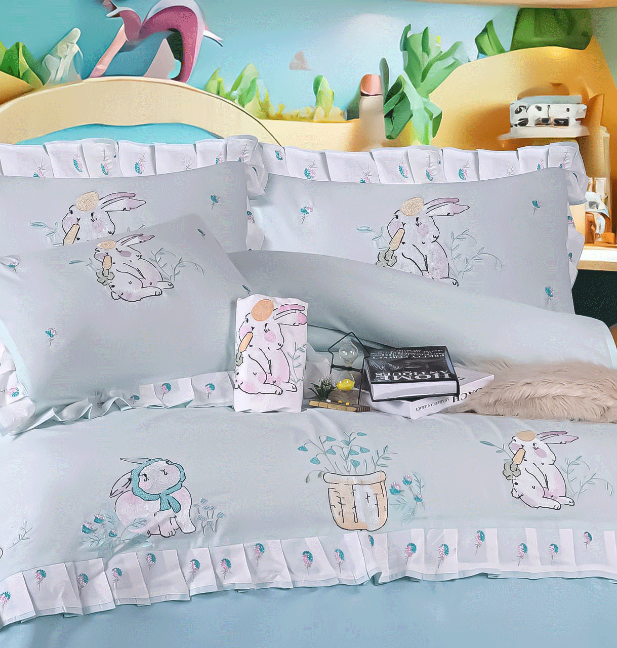 طقم سرير اطفال مطرز بشكل ارنوب كيوت بخامات ناعمة على بشرة طفلك