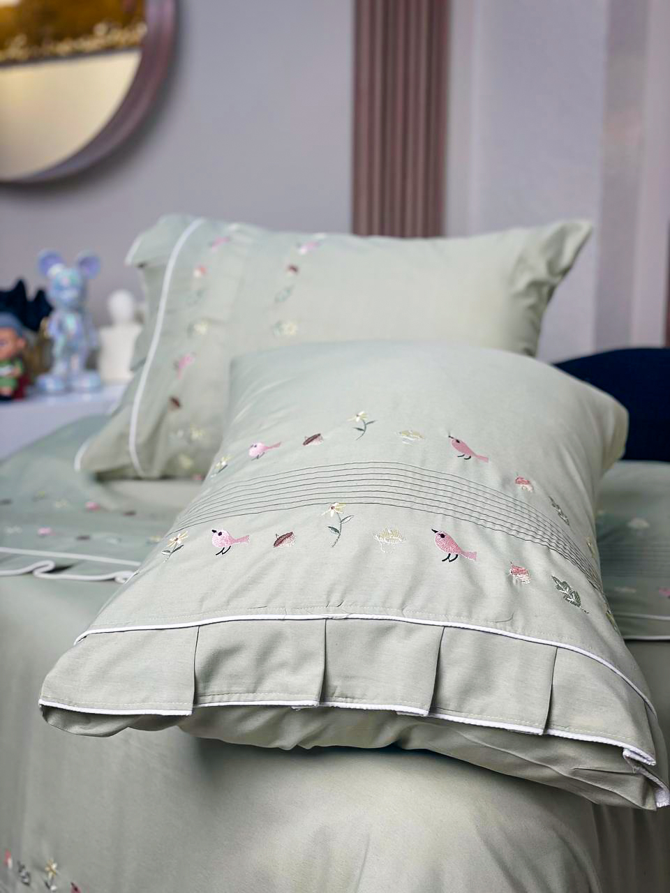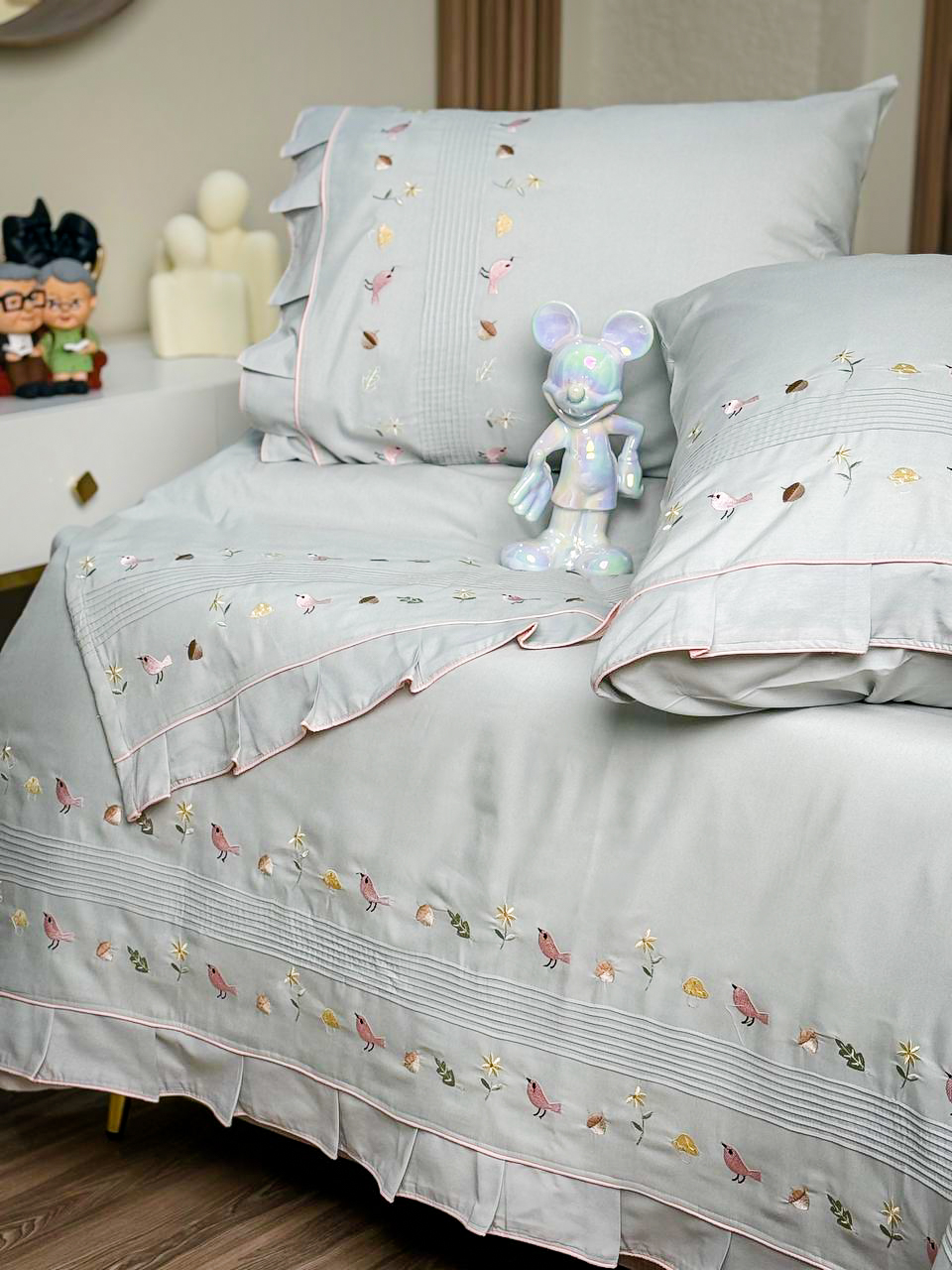 طقم سرير اطفال مطرز بأشكال بسيطة فى غاية الرقة والشياكة بخامات لطيفة على بشرة طفلك