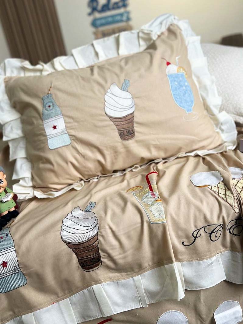طقم سرير اطفال مطرز بأشكال الأيس كريم المختلفة