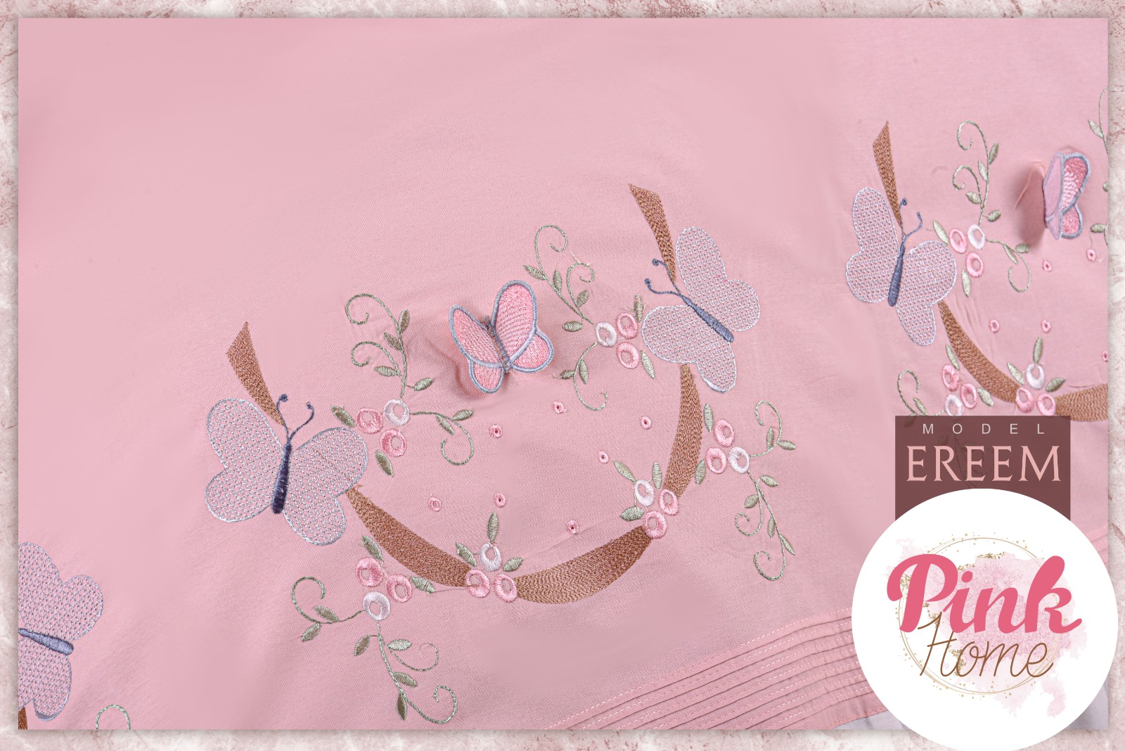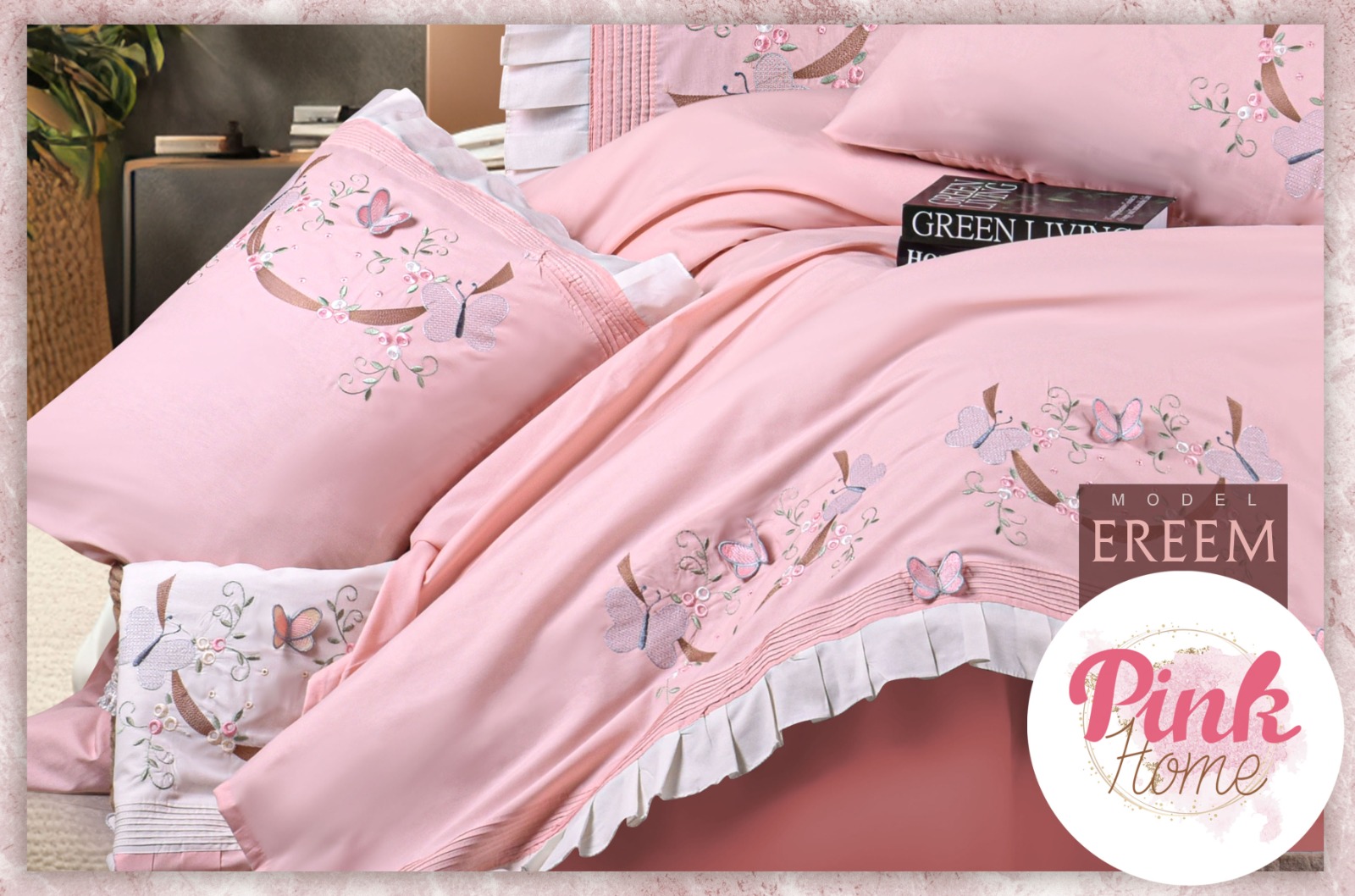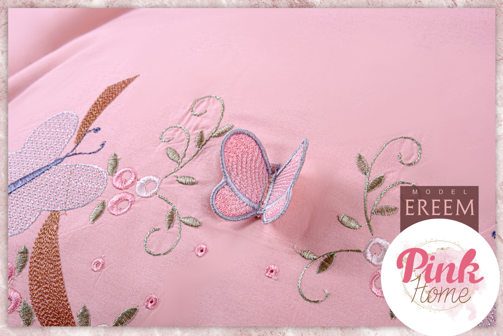 طقم سرير كبير مطرز بالورد و الفراشات المبهجة الطايرة على الطقم لتضيف لمسة أناقة لغرفة نومك