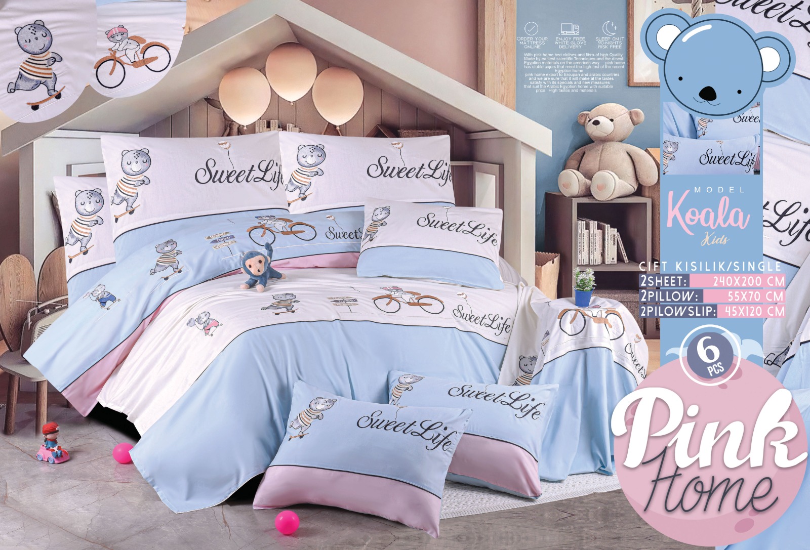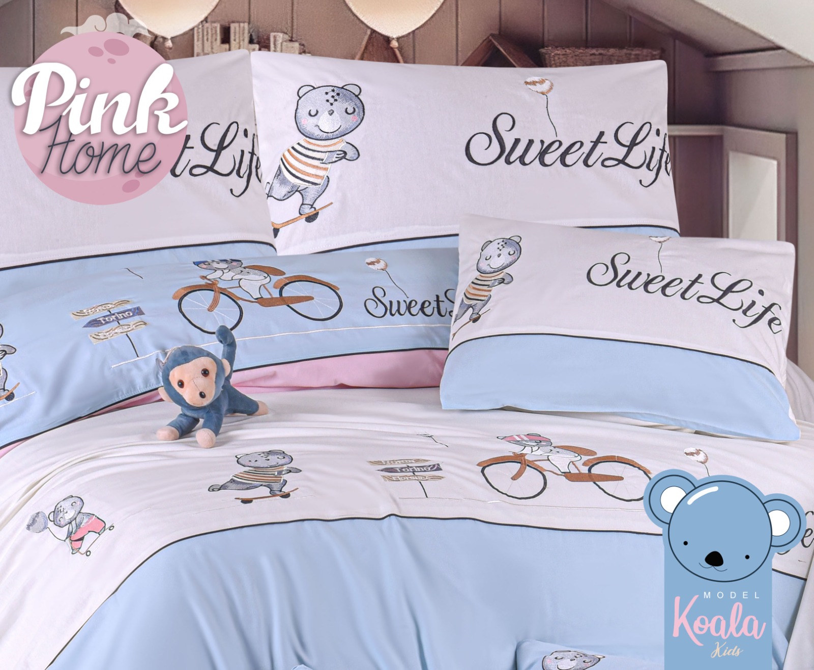 طقم سرير اطفال مطرز بتفاصيل من الشخصيات الكرتونية الممتعة مع خامات ناعمة لطيفة على بشرة طفلك